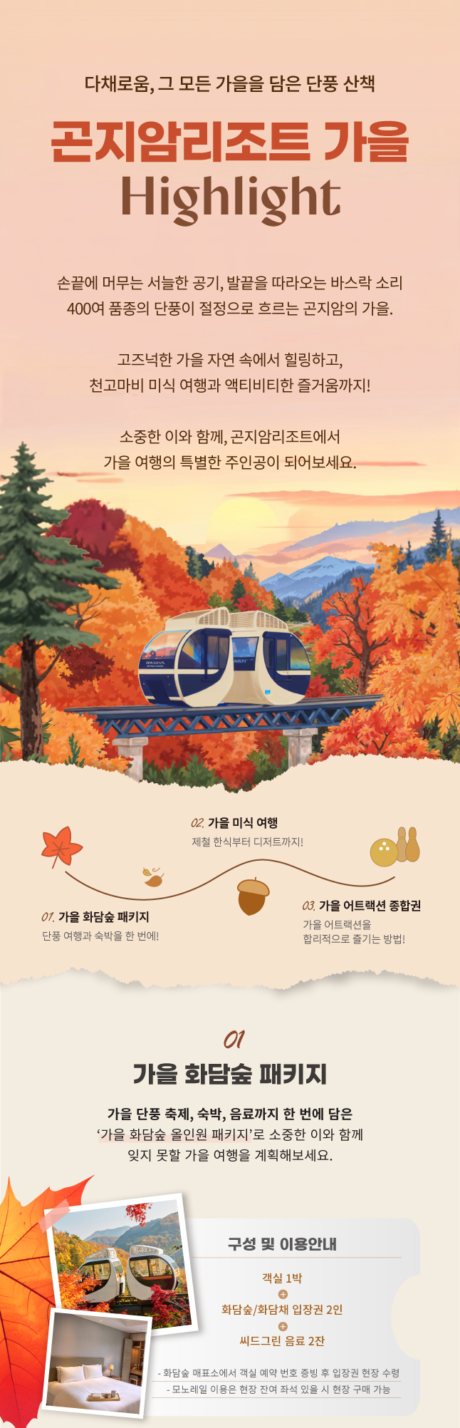 가을 화담숲 올인원 패키지 바로가기 URL - https://www.konjiamresort.co.kr/condo/packageInfo.dev?pkgNo=PK25000021&pkgTpCd=PT0001