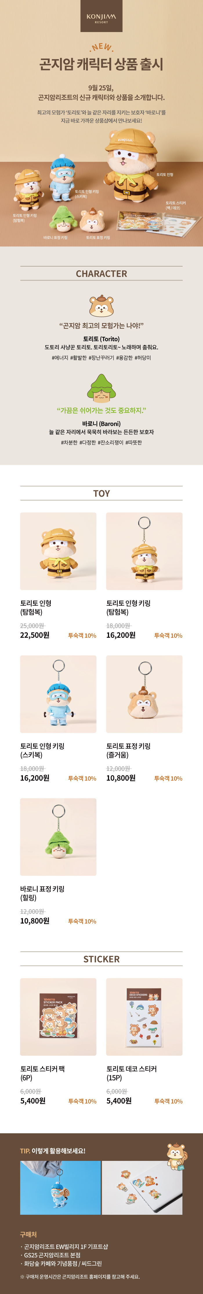 최고의 모험가 '토리토'와 늘 같은 자리를 지키는 보호자 '바로니'를 지금 바로 가까운 상품샵에서 만나보세요!