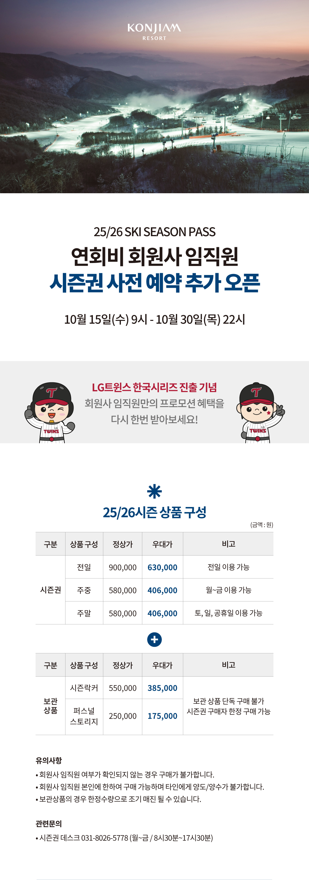 상품 관련 문의는 시즌권 데스크(031-8026-5778)로 연락 바랍니다.