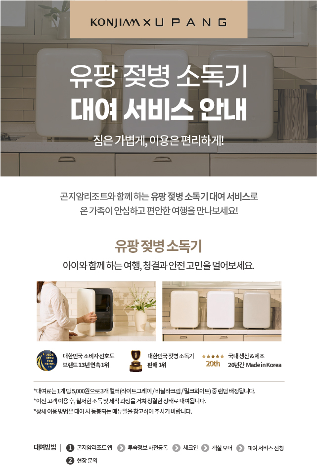 곤지암리조트와 함께 하는 유팡 젖병 소독기 대여 서비스로 온 가족이 안심하고 편안한 여행을 만나보세요!