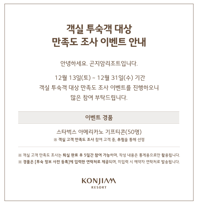 [안내] 객실 투숙객 대상 만족도 조사 이벤트