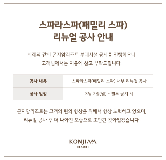 [안내] 스파라스파(패밀리 스파) 리뉴얼 공사 안내 (3/2~)